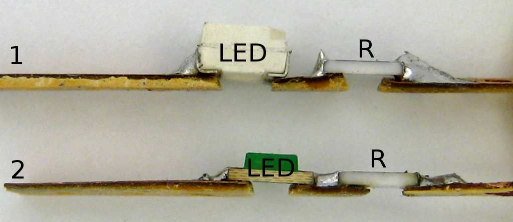 gaps below your components : Side View : 1 -red LED board , 2- green LED board, R - Resistor ![]() |